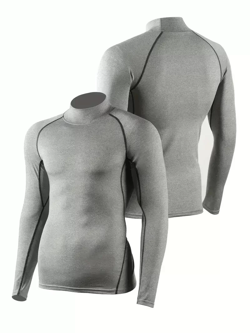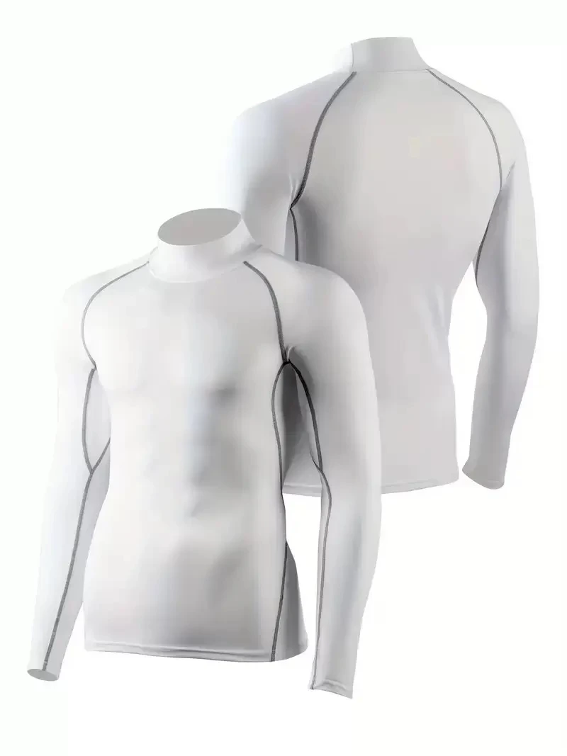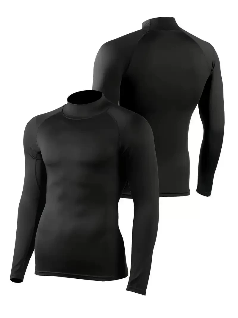European and American sizes, suitable for home fitness, men's high-elasticity training sportswear, warm, tight-fitting, high-neck, long-sleeved outdoor sportswear