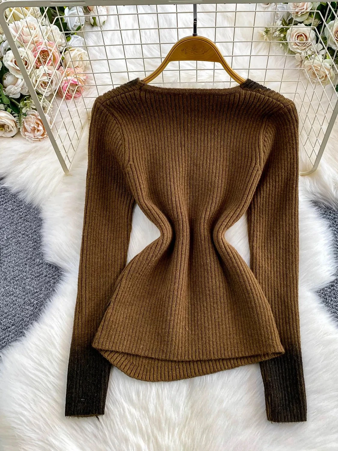 New women's winter blouse 2025 with a vintage gradient design and a V-neck.