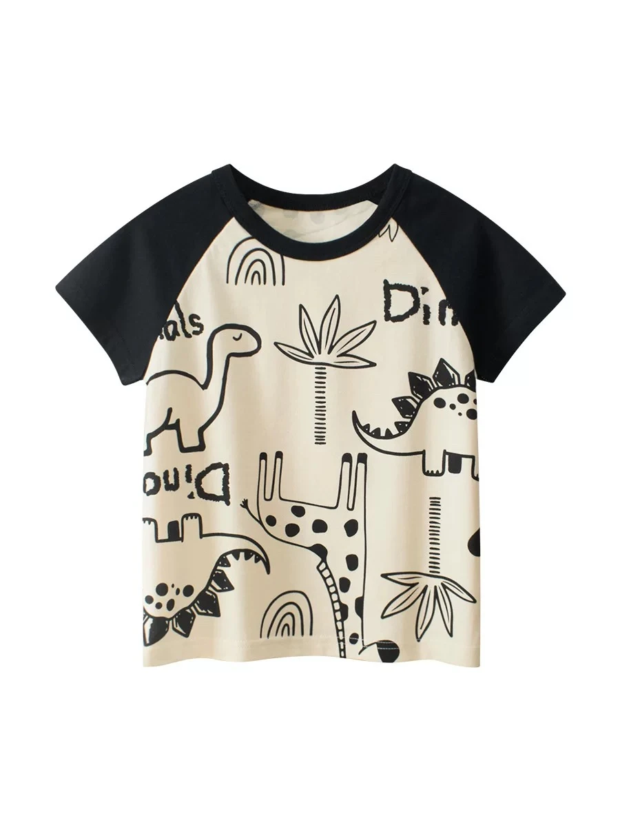 Pure Cotton Boys' Short-Sleeve T-Shirt Summer Cartoon Dinosaur T-Shirt