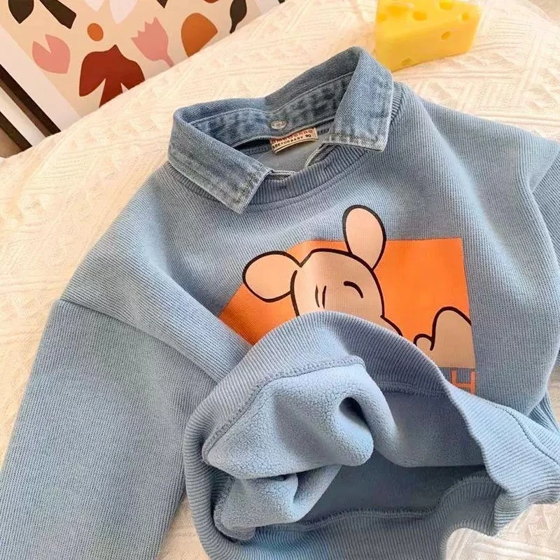 Fleece-Lined Thick Warm Clothing for Toddlers, Faux Collar Fleece Top, Stylish and Trendy