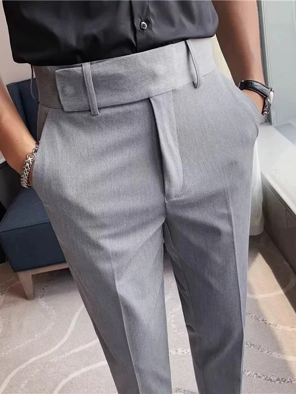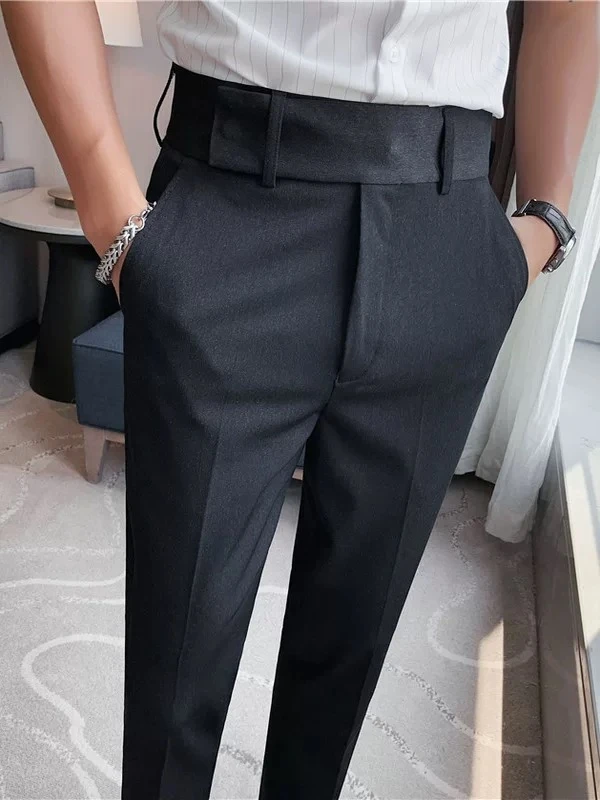 Elegant formal men's trousers from Naples, slim fit, high waist, suitable for work, straight cut.
