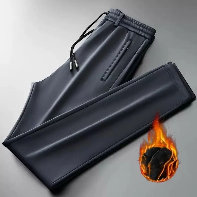 Luxury men's casual trousers, high-quality men's winter trousers, loose-fitting, straight-leg athletic trousers, elastic waistband, thick fur lining